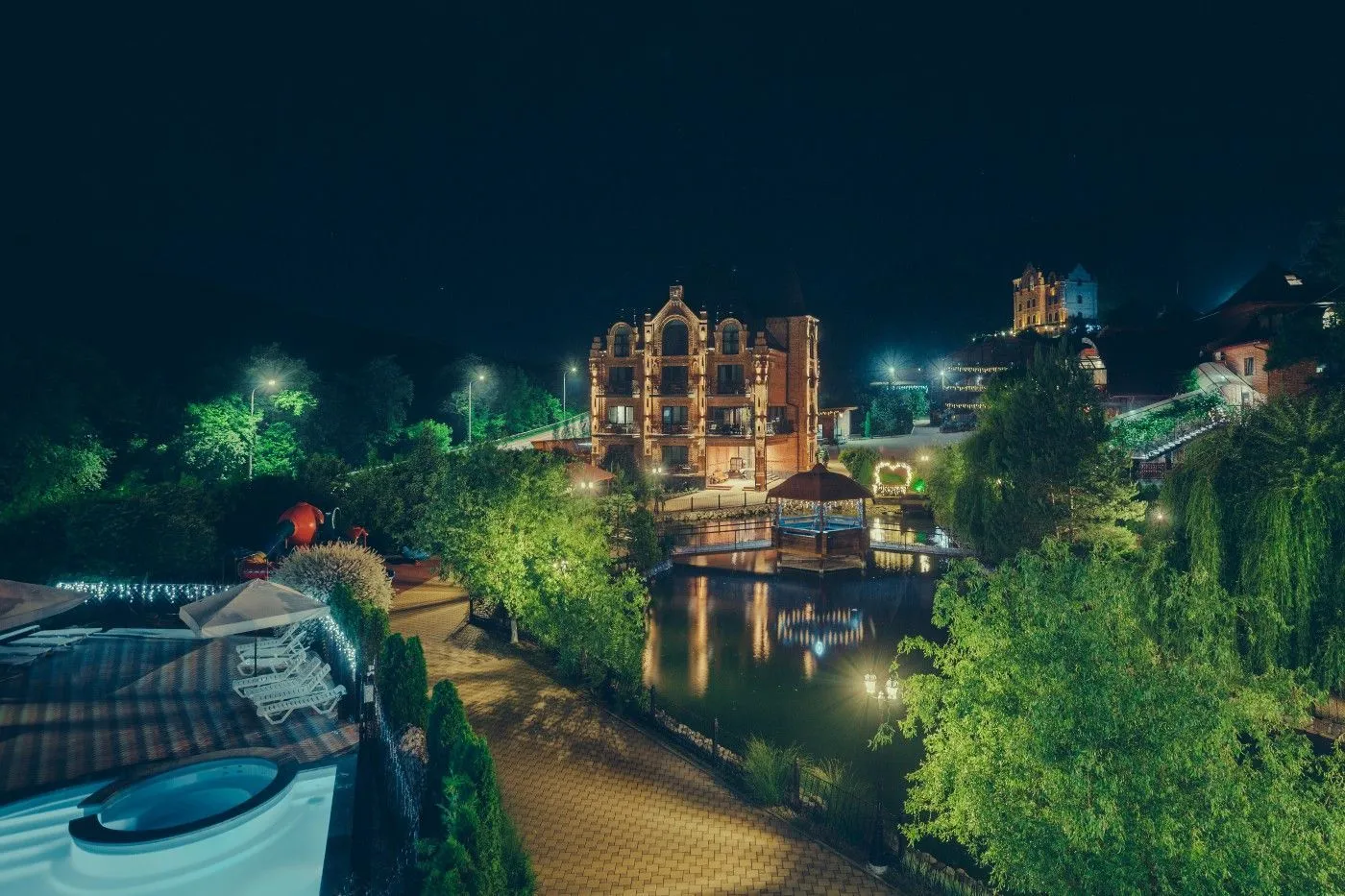 - На основной территории — 41 комфортабельный номер категории 3 звезды и новый корпус 4 звезды с 16 номерами «Сюит».