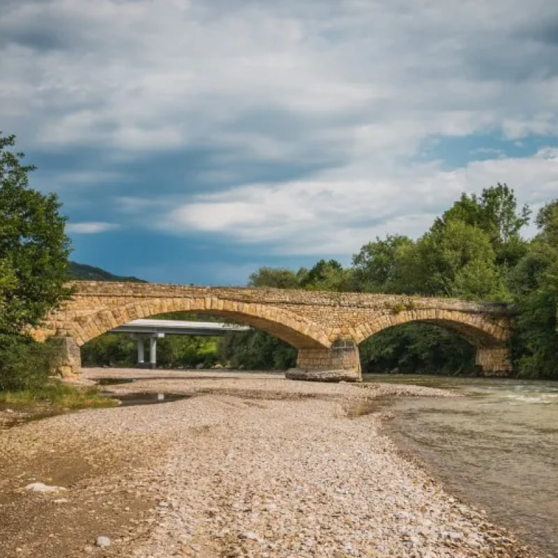 Мост находится в Даховской всего в 500 метрах от базы отдыха "Даховская Слобода" и является одной из главных достопримечательностей станицы наряду с Савранской канатной дорогой. По своему внешнему виду мост напоминает римский виадук, построенный еще до новой эры. На самом деле этот памятник архитектуры построен в начала ХХ века - в 1906 году. Мост был построен ссыльными казаками и местными жителями станицы Даховской. Он получился очень прочным и прекрасно сохранился до наших дней при том, что в советские времена по нему ежедневном проезжали лесовозы, автобусы и даже военная техника!