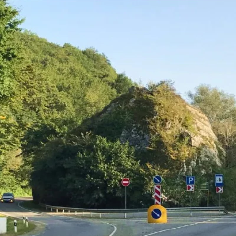 Если отправится из станицы Даховской в поселок Каменномостский, то прямо по дороге, в Хаджохском ущелье, можно увидеть одну из главных достопримечательностей этих мест — Казачий камень. Огромная глыба, некогда сорвавшаяся с хребта Уна-Коз, улеглась посередине долины реки Белой и преградила дорогу путникам.