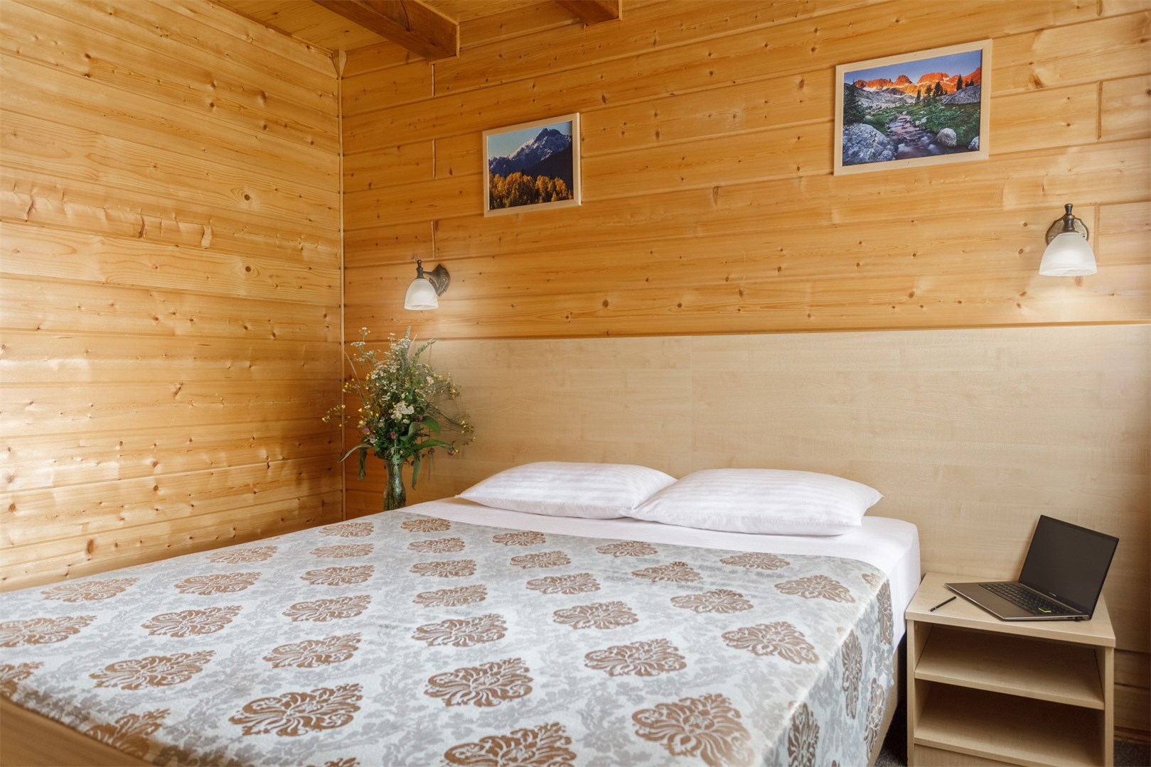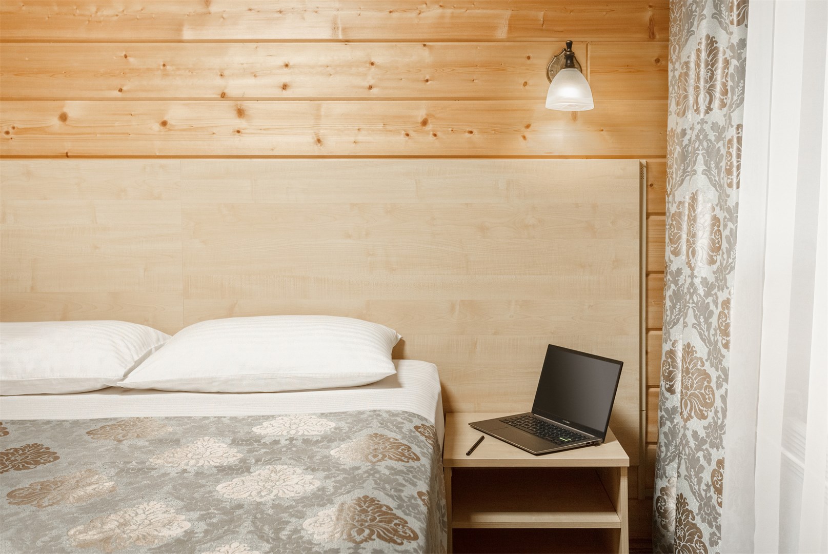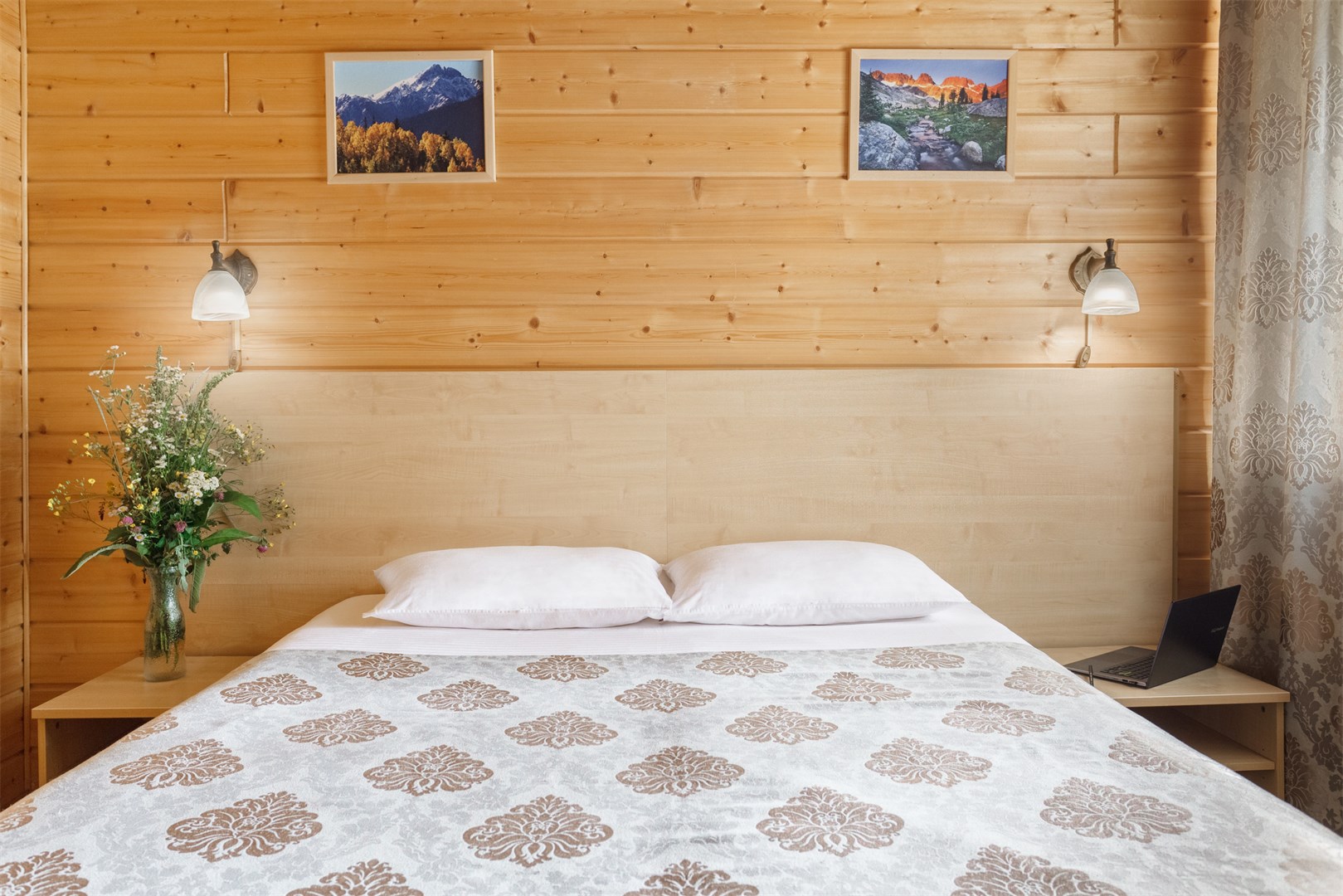Вид на ухоженную территорию комплекса и хребет Уна-Коз. Санузел с душем. В номере «Стандарт» 2 односпальные кровати или двухспальная, встроенный шкаф-купе, стол, стулья. Отопление — конвектор с возможностью индивидуальной регулировки. Пол — ковролин.
